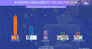Az Európai Parlament magyar tagjainak választásán a Fidesz-KDNP 13, a Demokratikus Koalíció 4, a Momentum Mozgalom 2, a Jobbik és az MSZP-Párbeszéd 1-1 mandátumot szerzett – ismertette a választás előzetes eredményét 99,9 százalékos feldolgozottság mellett a Nemzeti Választási Iroda elnöke vasárnap késő esti sajtótájékoztatóján, Budapesten.