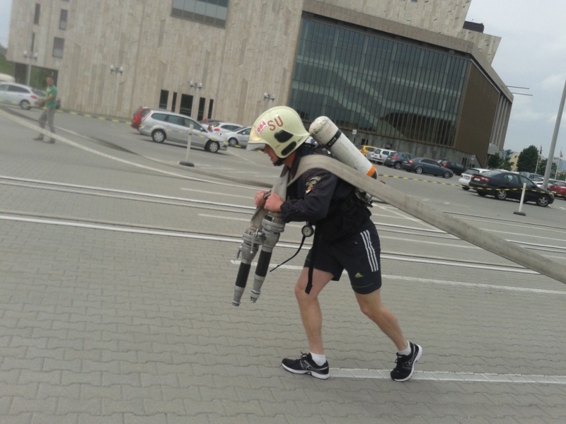 Egy 6 kg-os kalapáccsal egy erre kialakított dobozban 50-50 ütést mérni, egy 15 kg-os kannát átvinni egy alagúton, majd egy 80 kg-os homokkal töltött bábut 100 méteren keresztül vinni és egy 2,5 méteres palánk átugrása. A harmadik részben a rajttól 10 m futás után, 2 db kéttagú dugólétrát kell egy állványzat emeletéhez beállítani. Ezt követően 2 db15 kg. súlyú műanyag kannával kell a torony emeletére felmenni. Ezután 2 db „B” tömlőt kötél segítségével felhúzni az emeletre és a 15 kg súlyú kannákat levinni a földszintre. 10 m futás után egy sugárcsőre kell rácsavarni a lövőkét. Végül 10 m futás a célig. A végső megmérettetés pedig 12 emeletre való felfutás.